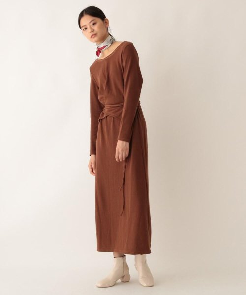Amazon Co Jp オゾック Ozoc 洗える サッシュ付ロングニットワンピ 38 M レンガ 069 服 ファッション小物